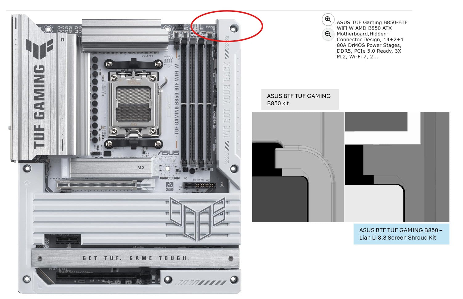 IF you have the white/silver ASUS BTF TUF GAMING B850, please select that version as it requires an additional notch on the top right corner for fitment .